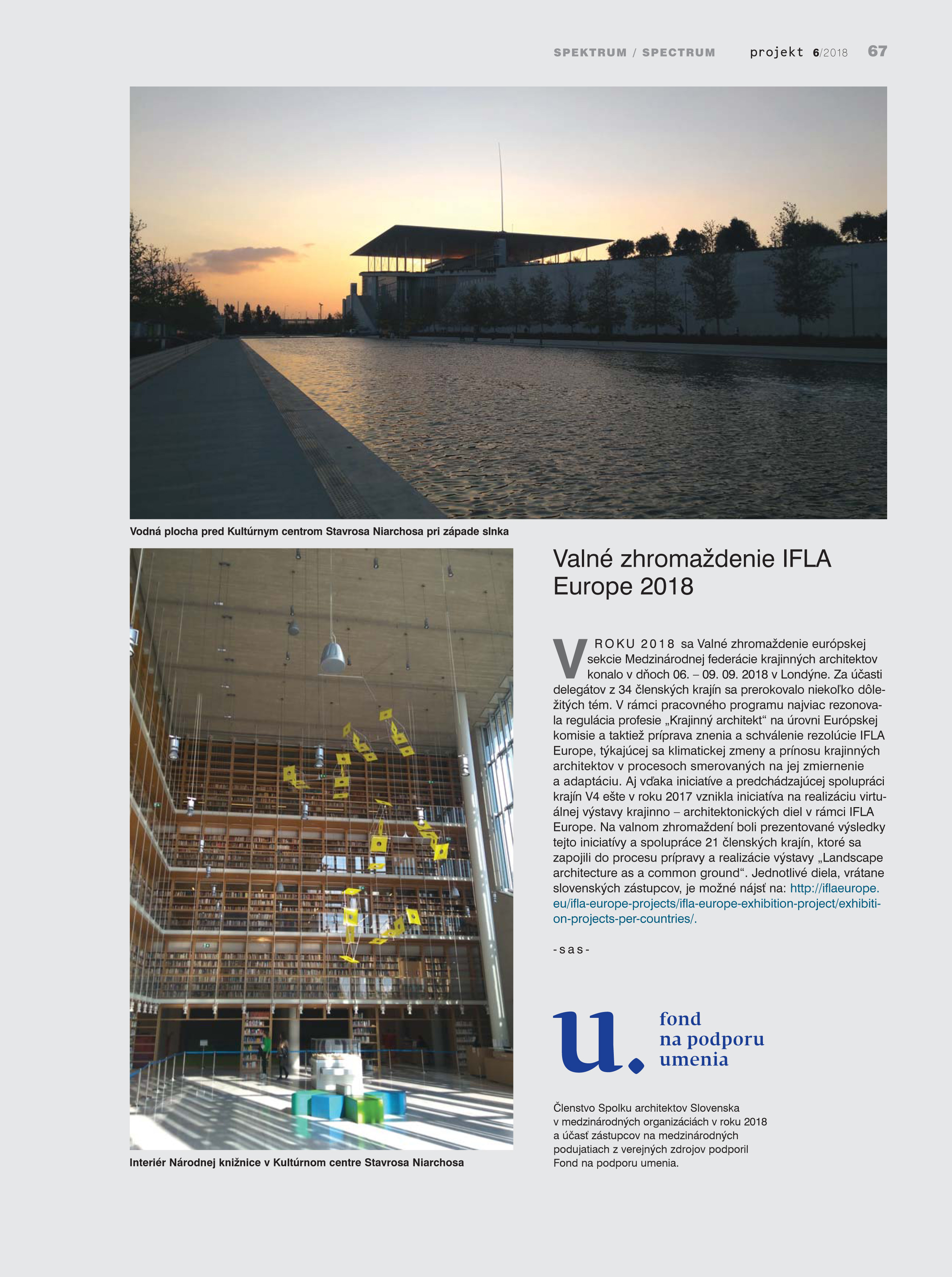 Členstvo v medzinárodných organizáciách v roku 2018 a účasť prdstaviteľov Spolku architektov Slovenska na medzinárodných podujatiach z verejných zdrojov podporil Fond na podporu umenia.