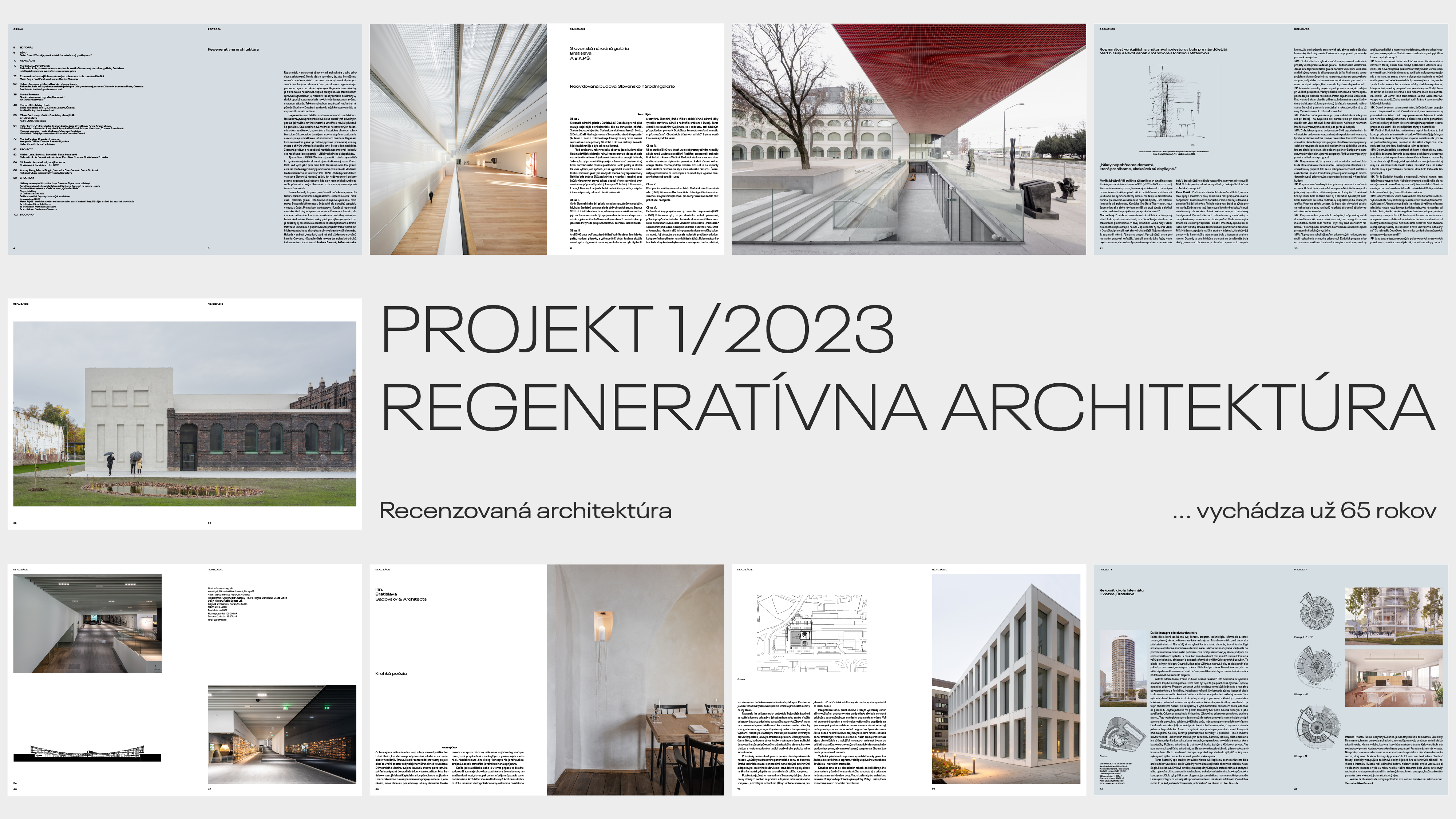 V týchto dňoch vychádza aj prvé číslo 65. ročníka časopisu PROJEKT 01/2023. Mapuje architektúru prevažne kultúrnu a regeneratívnu, rozsahom veľké i malé diela. K tým veľkým patrí prezentácia rekonštrukcie Slovenskej národnej galérie v Bratislave. Recenzia i rozhovor s jej autormi tvoria úvod čísla.