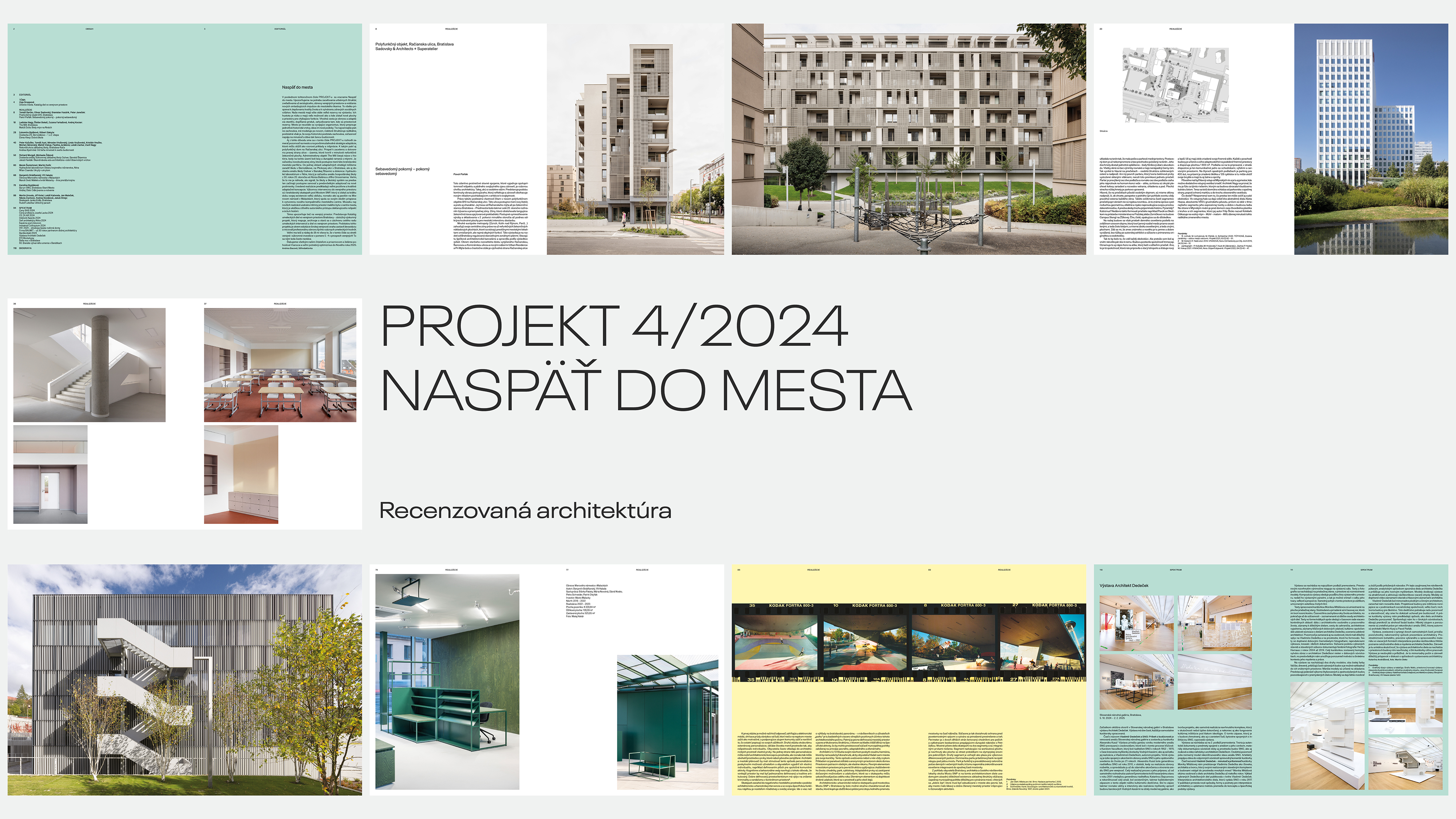 Posledné tohtoročné číslo PROJEKT-u sa vracia Naspäť do mesta. Upozorňuje na potrebu zaceľovania urbánnych štruktúr, zveľaďovania už existujúceho, obnovy verejných priestorov a vnášania nových impulzov do mestského tkaniva. Naše mestá majú stále veľké rezervy na výstavbu. Ich hustota je nízka a majú veľa možností ako a kde získať nové plochy a priestory pre chýbajúce funkcie. Vhodná cesta je obnova a adaptácia starého, dopĺňanie prieluk, zahusťovanie tam, kde sú priestorové rezervy. Aj z tohto dôvodu toto číslo PROJEKT-u zameriava pozornosť na povšimnutiahodné stratégie adaptácie.